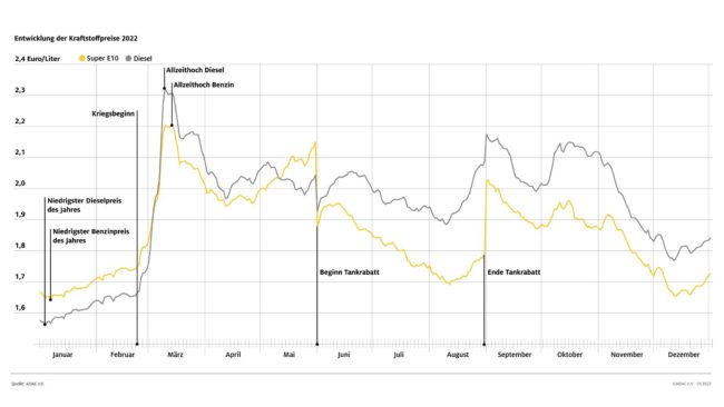 München (ots) – Leichte Entspannung an den Zapfsäulen: Nachdem die Spritpreise seit Mitte Dezember zuletzt um bis zu neun Cent je Liter gestiegen waren, zeigt sich nun ein spürbarer Rückgang. Laut aktueller ADAC Auswertung der Kraftstoffpreise in Deutschland kostet ein Liter Super E10 im bundesweiten Mittel 1,707 Euro – ein Minus von 3,6 Cent gegenüber der…