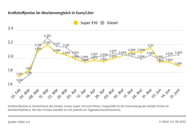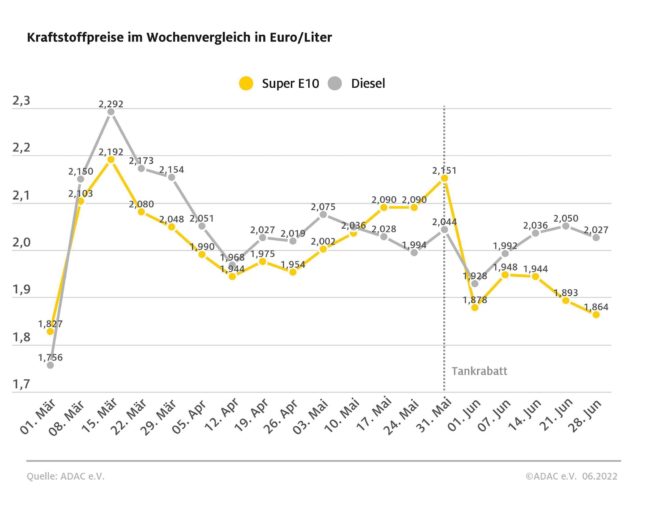 München (ots) – Nach einem Monat Tankrabatt fällt die Bilanz aus Sicht der Autofahrer alles in allem ernüchternd aus: Ein Liter Super E10 kostete im Juni im bundesweiten Mittel 1,911 Euro und damit 15,3 Cent weniger als im Mai, als noch die reguläre Energiesteuer zu zahlen war. Das zeigt die aktuelle ADAC Auswertung der Kraftstoffpreise für…