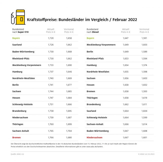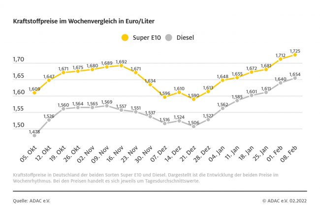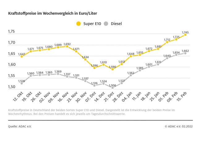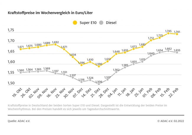 München (ots) – Erstmals seit zwei Monaten sind die Kraftstoffpreise in Deutschland im Wochenvergleich leicht gesunken. Sie liegen aber weiterhin auf einem sehr hohen Niveau. Ein Liter Super E10 kostet laut aktueller ADAC Auswertung im bundesweiten Mittel 1,741 Euro, das sind 0,4 Cent weniger als in der Vorwoche. Auch der Dieselpreis ging zurück. Ein Liter kostet…