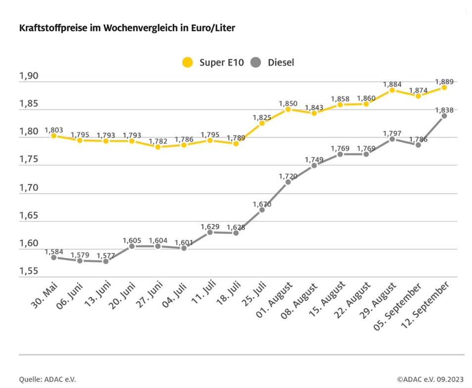 Obwohl gleichzeitig auch die Notierungen für Rohöl der Sorte Brent auf 92 US-Dollar gestiegen sind und damit in der Nähe ihrer höchsten Stände seit November 2022 liegen, ist der Anstieg der Spritpreise vor allem bei Diesel in der jetzigen Höhe aus Sicht des ADAC nicht nachvollziehbar. Eine Rechtfertigung für derart hohe Kraftstoffpreise ist somit auch nicht aufgrund des Rohölpreises ersichtlich.