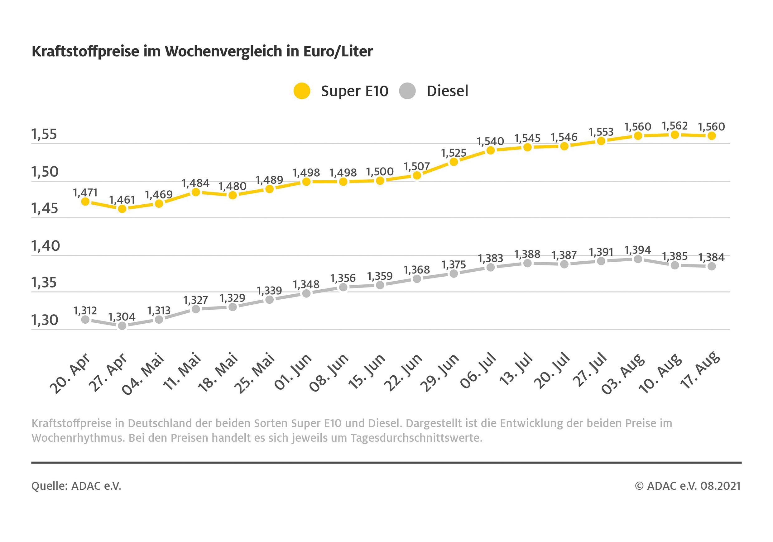 Das ausgesprochen hohe Spritpreisniveau wird mit einem Vergleich der Situation von Anfang Juli deutlich. Obwohl Rohöl der Sorte Brent damals bei etwa 75 US-Dollar und darüber lag, war Benzin rund zwei Cent günstiger als heute. Dies zeigt laut ADAC wie sich – vor allem aufgrund der Urlaubssaison und der gestiegenen Nachfrage nach Kraftstoffen – die Preise regelrecht hochgeschaukelt haben. Der Spielraum für Preissenkungen an den Zapfsäulen ist daher hoch.