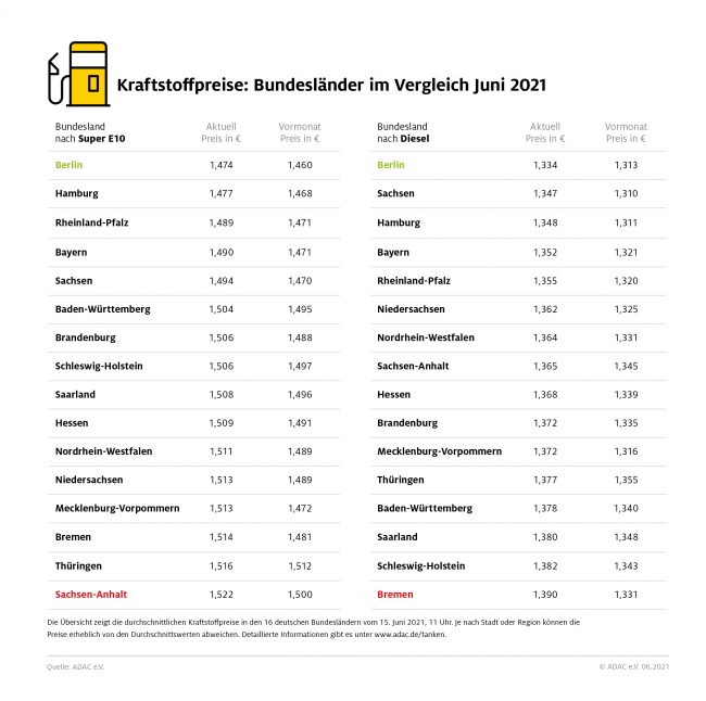 Berliner Autofahrer tanken am günstigsten – Benzin in Sachsen-Anhalt, Diesel in Bremen am teuersten